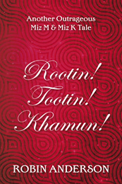 I have never been able to figure out how Robin Anderson can be so prolific – he seems to have books coming out the time and each is an excellent read. “Rootin! Tootin! Khamun!” is his seventh book in his series that began with “Lah De Dah Di Bloody Dah”, the adventures of Miz M and Miz K, two transvestites of class, style and taste (at least that is how he describes them). These gals have the knack for getting themselves into some of the worst situations possible. This novel plats with the concept of time and I am going the books blurb since it is well put and much than I could say it.