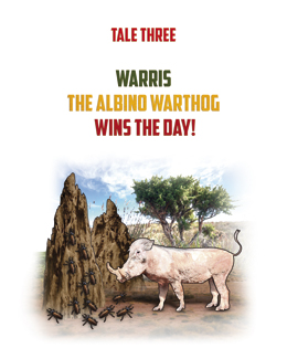 WARRIS the albino WARTHOG wins the day when he shows WITHERSPOON and WENDI, his brother and sister who are forever teasing him about his pale colouring (WARRIS being a pale pink as opposed to a WARTHOG’s usual muddy brown), you shouldn’t judge a book by its cover in the same way you shouldn’t judge a WARTHOG by his colour!
